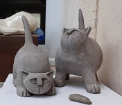 Sculpture dans la masse, travail à la plaque, engobes, cuisson et émaillage
